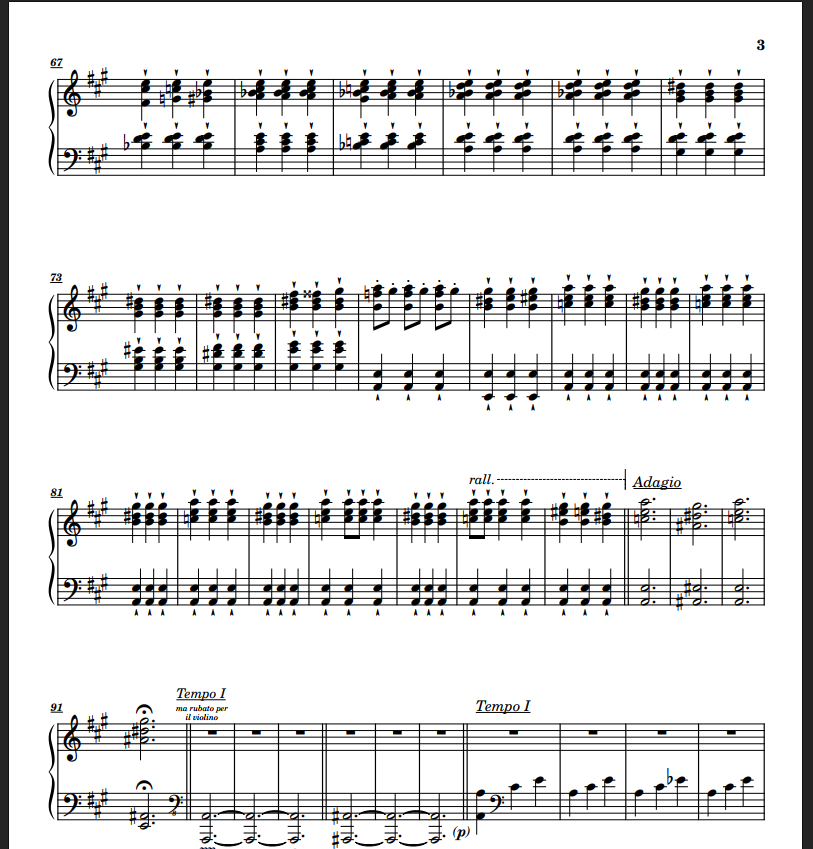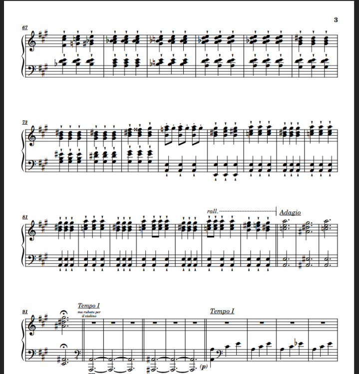 God damn it's true I'm just listening to Barenboim's rendition of it🤣. I may try again with glisses and fluttering, on some other piece that is 🗿. Thank you for your feedback Henry :). "01010100 01101000 01100001 01101110 01101011 00100000 01111001 01101111 01110101" 🙂 I sadly see this in dark mode Thank you Tristan! Seems I passed the test this time! Hi MK_Piano! I tried doing that but the margins don't seem to be updated in any config. I myself have printed a lot of my own scores and ended up preferring two:10mm and 15mm. This time I went with 10mm. I attach this video, perhaps you see something I do not. I checked other printing options and found out one that would increase my margins, but wouldn't increasing margins make margins bigger anyways and then I would end up having a lot of extra margin (My margins + Bleed)? Thanks for the heads up, perhaps I'm still missing something. Video here (I can't upload mp4s). I also tried with other printers and that is when the extra margins came, but I had to activate them. I had some handmade notebook with margin = 15mm at hand. Is this something that only happens with margins less than 15mm? What do you think of a piano part with reduced staves of the other instruments? What would you prefer as a pianist? Full score with dividers, full score but reduced parts that ain't piano, or just piano? Would it be a 100% one option no matter what? Am I asking too many questions 😁? @Henry Ng Tsz Kiu as a pianist yourself, what's your take on it? I'm also interested! For example, in this case we have 0 blank bars in the piano part. I would have thought it's spaced out enough. E.g: It's 10-8-7, and all quarter notes in page 3. Would you make it 5-5-5-5-5 or 6-7-6-6? Doing it any less than 5 when no instruments are playing would be difficult for me (matter of tastes), I could do it on demand of course. 🥶 I'll think about it. I don't tend to in compositions. Just in waltzes! I always do it in arrangements. Why? Not sure. I guess I have not seen them much in anything else than modern music and others' arrangements, but it's a good practice. That or circling bar numbers, but I guess that's less aesthetic. Thank you man, it's always cool when someone comes and makes you ponder your choices and you get to learn a thing or two at the very least. Thanks for your feedback and your optimism 😁. Hoping to stay for a long while this time. Time is scarce but I'll try to catch up! I'll vote for you Kind regards!!