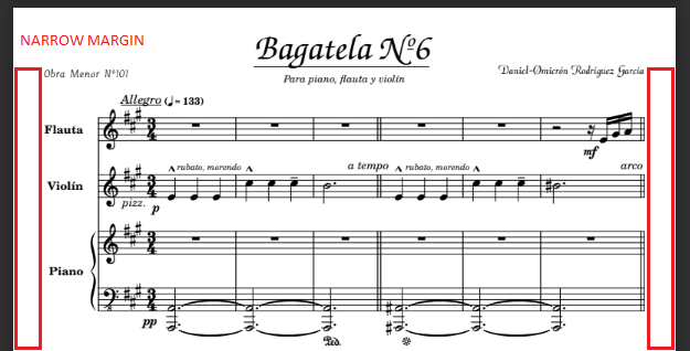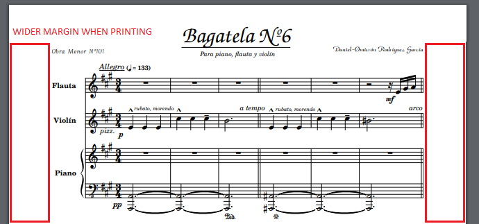 What a wonderful piece of music. Musically speaking, I greatly appreciate your abilty to develop the motif over the course of the work. It was entrancing and even went it felt dissonant, I was listening with intent. I do have specific critiques on the engraving/ format of the score: I think it would be a better decision to increase the margins of the entire score. All printers have a margin where they will not put any ink on the outside of the paper (This is called the bleeds). If you were to view your PDF and hit the print button, it will automatically update the margins. (I have attached two screenshots to show this). I also think you can space out the measures more in certain spots (mm.31-58) even when instruments are playing. A pianist would read a part with all 3 instruments on there to help with coordination and having it spaced out may be a nice convenience. Lastly, I recommend adding system dividers to separate the score and to add rehearsal marks so one day, a trio can actually rehearse and use specific places in the score to practice. Lovely video to accompany this as well! π