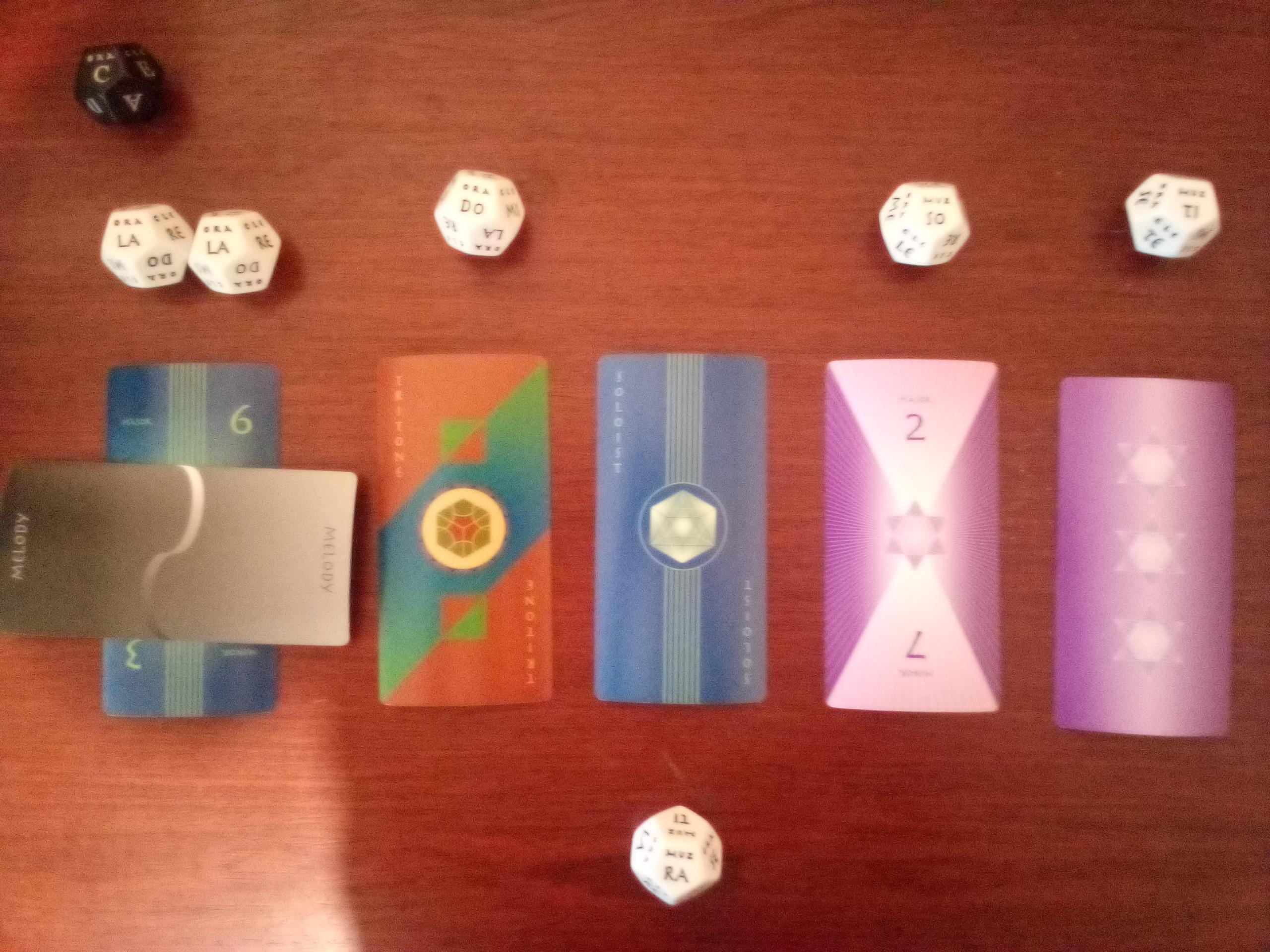Perhaps my most intriguing Muzoracle casting to date - Fred asked the Muzoracle "How will I attain political power?". (Muzoracle is a storytelling/divination tool similar to the Tarot card deck, but with cards with musical concepts and 12-sided Musician's dice and Solfege dice.) My interpretation of the cards and dice are displayed below. Since two strings cards were dealt in the 1st and 3rd position, I used Violin and Cello. In the 2nd position I dealt a Tritone of Percussion so I used a Clavichord. In the 4th and 5th positions I dealt a Major 2nd and a Triad of Voices, so I used choir. If you'd like to find out more about Muzoracle and how castings are interpreted go here: https://muzoracle.net/ This short musical interpretation of Fred's Casting is about a minute and a half long. The piece is in C major since the black musician's die landed on C. I then made the following melodic/harmonic underdrawing that I used in the composition of the music. To fill out the piece harmonically I included Roman numeral interpretations of each of the dyads/positions in the casting. Since the piece starts with strings I used Violin, Cello and Harpsichord in the first three positions. The voices then come in on the 4th and 5th position. The Triad card is normally supposed to be interpreted as a major triad, but since this was a descending casting and the position where the triad card was dealt was descending I decided to interpret it in a negative harmony way, inverting the intervals of the triad downwards, thus producing an E minor triad based on B (Ti). Then, to conclude the piece I reversed the order of the chords in retrograde fashion to land back on the first chord at the conclusion, but reinterpreting it harmonically as a C major 6 chord. I also reinterpreted the triad as a major triad ascending from B (Ti). If you've gotten this far, thanks for reading! And I hope you enjoy listening to this short chamber work I wrote to represent Fred's Casting. Comments, critiques, suggestions, or observations are of course, always welcome. Thanks for listening!